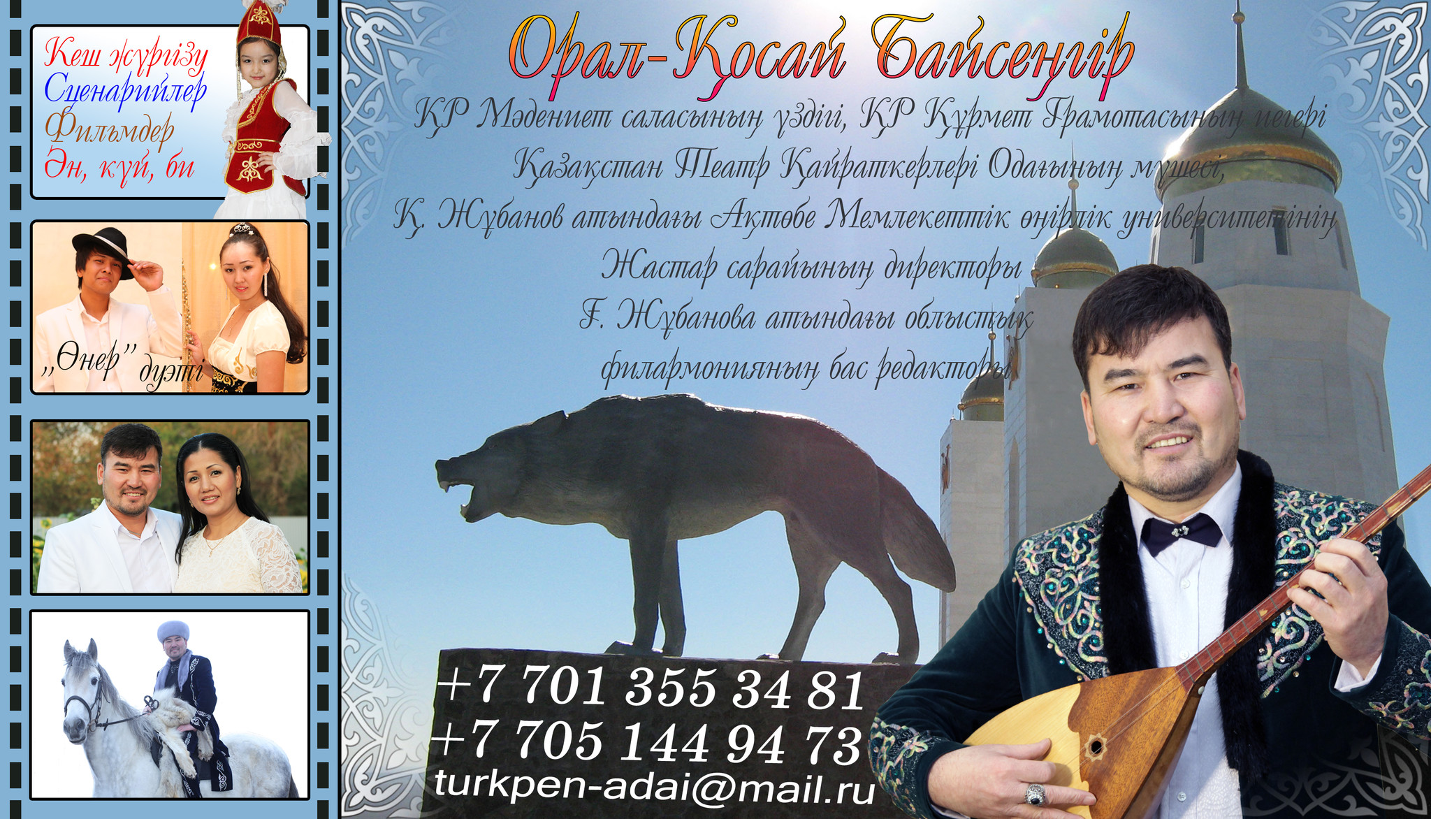 ҚР Мәдениет саласының үздігі, ҚР Құрмет Грамотасының иегері, Қазақстан Театр Қайраткерлері Одағының мүшесі, Қ.Жұбанов атындағы Ақтөбе Мемлекеттік өңірлік университетінің Жастар сарайының директоры, Ғ.Жұбанова атындағы филармонияның бас редакторы